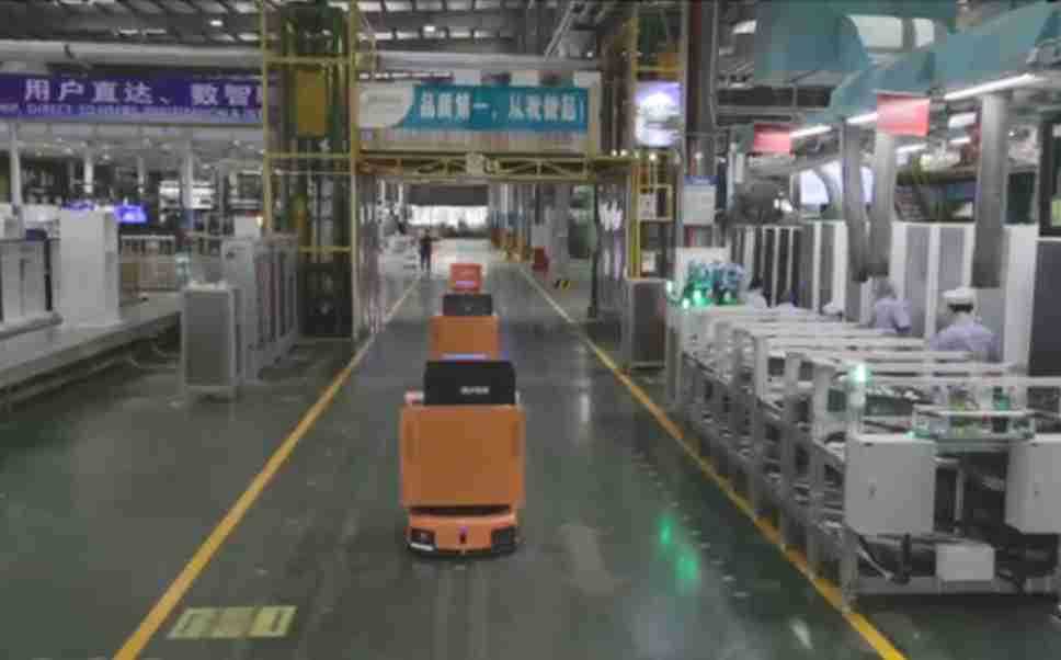 为车载冰箱物流配送打造的智能解决方案,,,包含产中物流通过潜伏举升AMR搬运至线边,,,产后成品物流智能仓储,,流程包含产中物流智能齐套入库,,线边安灯叫料AMR智能配送至线边,,成品入库、、出库,,通过无人堆高车机器人,,,智能仓储管理替代人工作业管理,,实现更高存储、、、、更高效率、、更具柔性化的解决方案。。